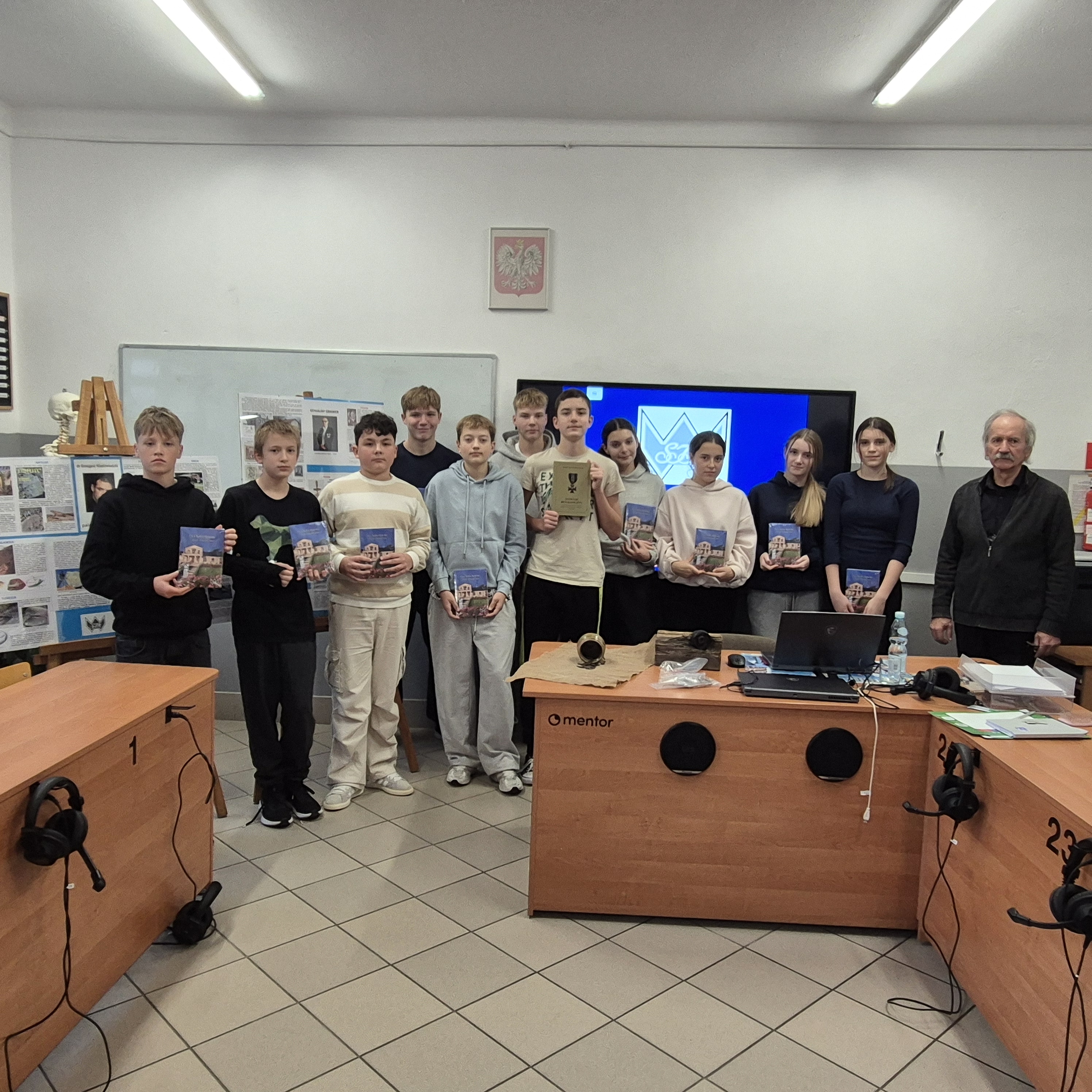 Spotkanie przebiegło w niezwykle inspirującej atmosferze. Dzieci nie tylko słuchały z uwagą, ale przede wszystkim bardzo aktywnie włączyły się w dyskusję. Serdecznie dziękujemu za tę wartościową i pouczającą lekcję historii, która na długo pozostanie w pamięci uczniów.