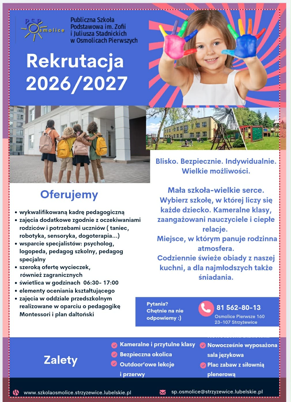 Rozpoczyna się rekrutacja do publicznego przedszkola, oddziałów przedszkolnych w szkołach podstawowych, klas pierwszych szkół podstawowych prowadzonych przez Gminę Strzyżewice na rok szkolny 2026/2027.