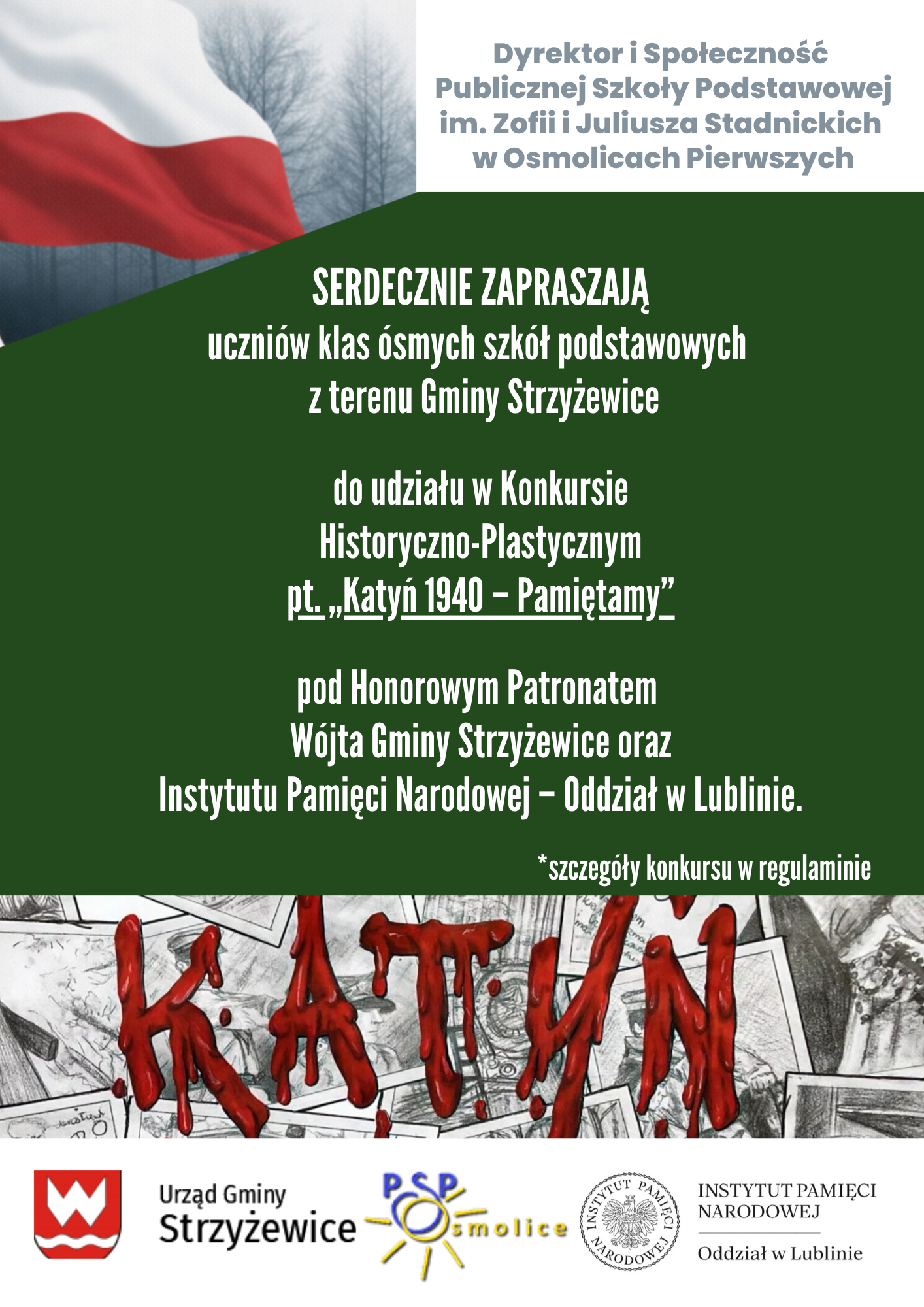 Konkurs Historyczno-Plastyczny pod Honorowym Patronatem Wójta Gminy Strzyżewice oraz Instytutu Pamięci Narodowej – Oddział w Lublinie pt. „Katyń 1940 – Pamiętamy!”